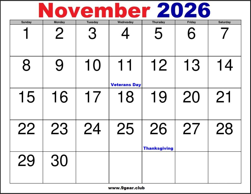 Thanksgiving 2026 – Thursday, November 26, 2026
