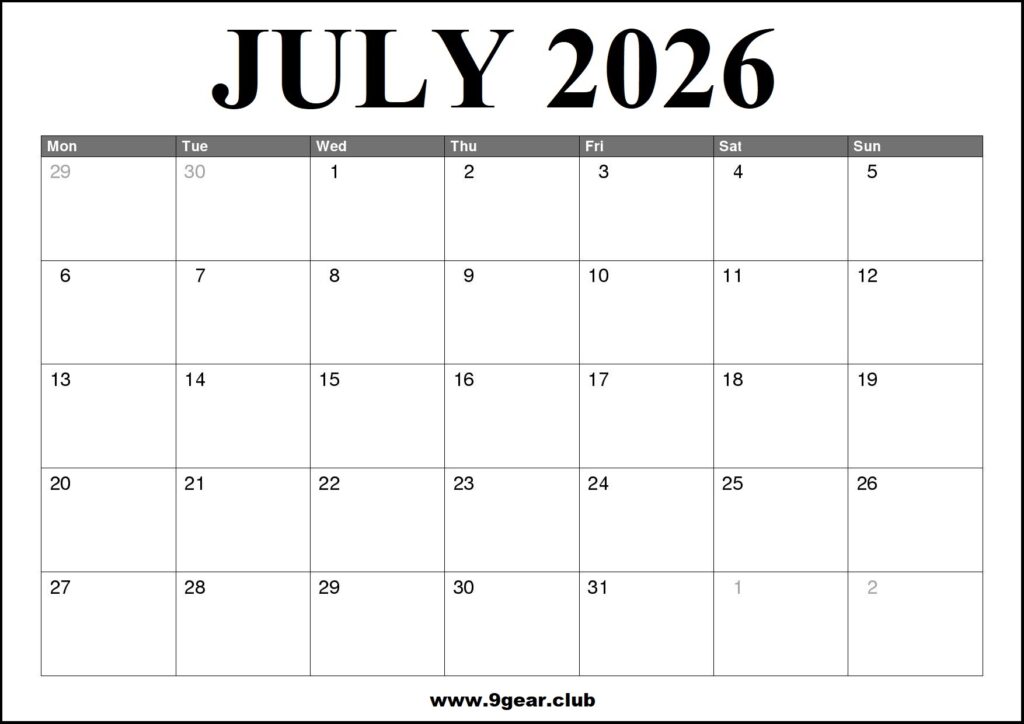 UK July 2026 Printable Calendar September 30, 2025 by 9gearclub July 2026 Monthly Calendar UK – Horizontal A4 Size 2026 July United Kingdom 🇬🇧 Calendar with Holidays Monday Start, Free Download Printable UK Calendar 2026 UK Calendar Printable 2026 July Monday Week Start, UK Calendar Monday Start Monthly Calendar, Horizontal, UK. Related posts:UK December 2026 Calendar PrintableMarch and April 2025 Calendar PrintableJune 2026 US Calendar with Holidays Related posts: UK January 2026 Printable Calendar UK February 2026 Calendar Printable UK March 2026 Printable Calendar UK April 2026 Printable Calendar