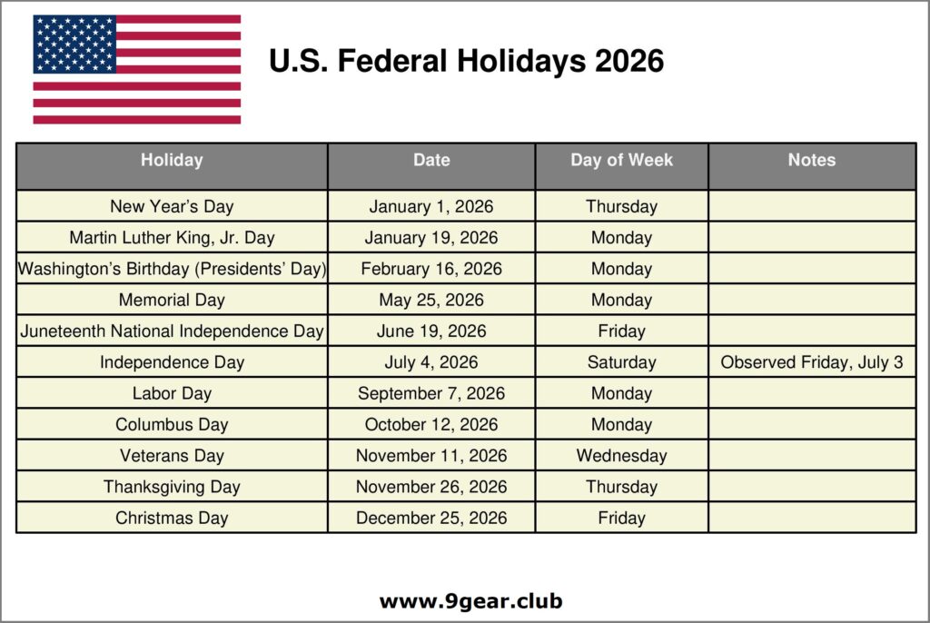 US Federal Holidays 2026 Calendar September 22, 2025 by 9gearclub 2026 Federal Holidays Calendar US Free Download 4 Size HD Printable 2026 Federal Holidays Calendar USA US federal holidays 2026 USA calendar Free Printable Download United States (US ) Public holidays (2026) Related posts:UK November 2026 Printable CalendarDecember 2026 US Calendar with HolidaysDecember 2026 Printable Calendar Related posts: July 2025 UK Printable Calendar August 2025 UK Printable Calendar May and June 2025 Calendar Printable May 2026 – June 2026 Calendar Printable