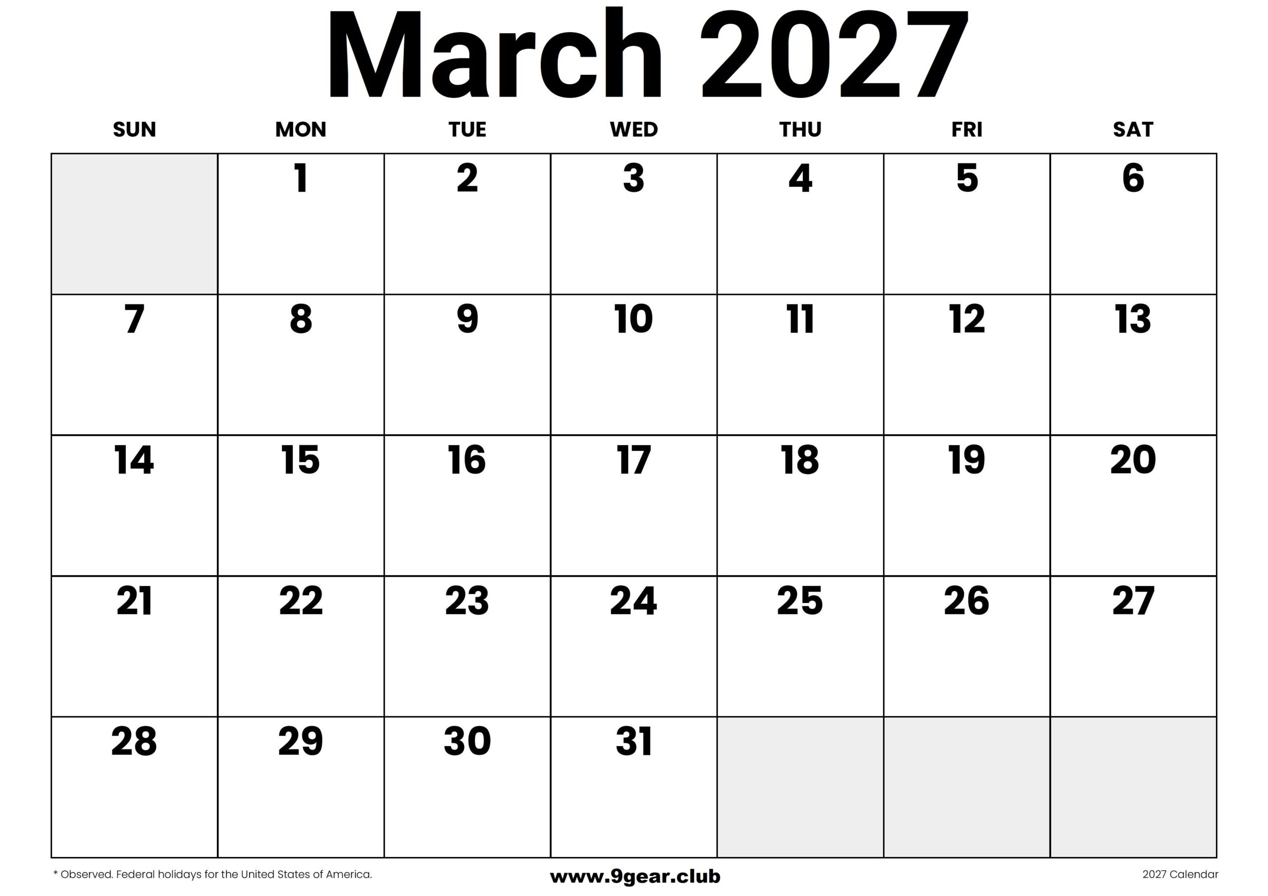 April 2027 USA Calendar Printable