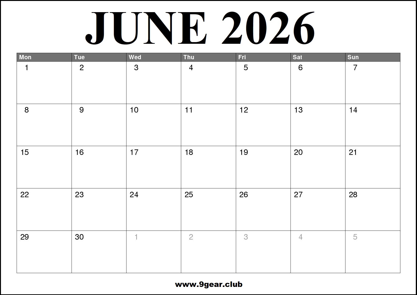 2026 June United Kingdom 🇬🇧 Calendar with Holidays June 2026 Monthly Horizontal Planner A4 Size – UK Monday Start, Free Download Printable UK Calendar 2026 June Monday Week Start, UK Calendar Monday Start Monthly Calendar, Horizontal, UK.